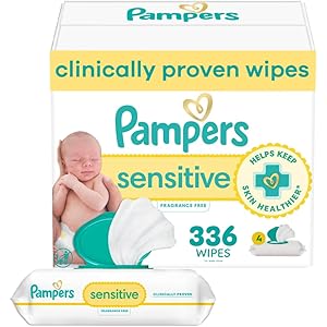Pampers Baby Wipes, Sensitive, Water Based Wipe, Clinically Proven, Hypoallergenic, and Unscented for Babies, 336 Wipes Total (4 Flip-Top Packs)