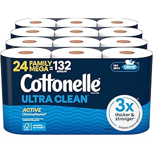 Cottonelle Ultra Clean Toilet Paper with Active CleaningRipples Texture, Strong Bath Tissue, 24 Family Mega Rolls = 132 Regular Rolls (4 Packs of 6)