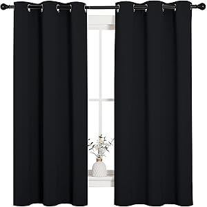 NICETOWN Halloween Pitch Black Solid Thermal Insulated Grommet Blackout Curtains/Drapes for Bedroom Window (2 Panels, 42 inches Wide by 63 inches Long, Black)