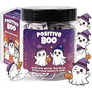 Positive Ghost Affirmation Jar – 60 Funny Emotional Support Ghosts, Boo Basket Stuffers for Women, Halloween Gifts for Women,Teens, Tween, Cute Halloween Basket Stuffers, Spooky Gifts