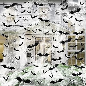 1200 sqft Halloween Spider Webs &120pcs Fake Bats 50pcs Fake Spiders Super Stretch Cobwebs for Halloween Theme Decoration Party Supplies