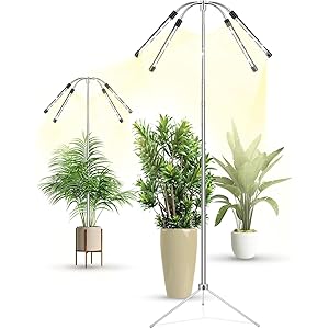Yiyehu Grow Lights for Indoor Plants Full Spectrum,15-62 Inches Height Adjustable Dsektop and Standing Plant Growing Lamps with Detachable Tripod Stand, Auto On/Off Timer (Full Spectrum, Four Heads)