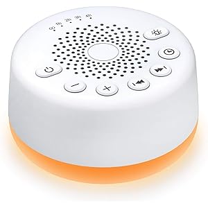 Sound Machine Easysleep White Noise Machine with 25 Soothing Sounds and Night Lights with Memory Function 32 Levels of Volume and 5 Sleep Timer Powered by AC or USB for Sleeping Relaxation (White)