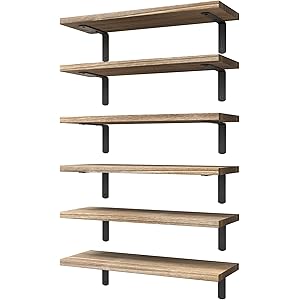 WOPITUES Wood Floating Shelves Set of 6, Shelves for Wall Decor, Farmhouse Shelf for Bedroom, Bathroom Storage Shelves, Book Shelves for Living Room - Rustic Brown