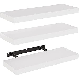 AMADA HOMEFURNISHING Floating Shelves, Wall Shelves for Bathroom/Living Room/Bedroom/Kitchen Decor, White Shelves with Invisible Brackets Set of 3 - AMFS08