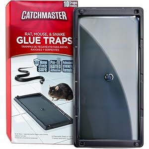 Catchmaster Rat, Snake and Mouse Traps 10Pk, Large Bulk Glue Rat Traps for Home, Adhesive Plastic Tray for Inside House, Snake, Mice, & Spider Catcher, Pest Control for House & Garage