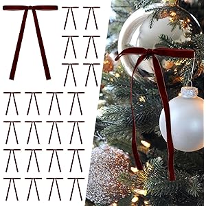SIMISI RIBBON 24 Pcs Burgundy Velvet Christmas Tree Bows Door Garland Decor Vintage Wreath Bow (3/8'' Wide, 5 * 7 inch)