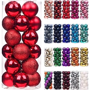 Emopeak 24Pcs Christmas Balls Ornaments for Xmas Christmas Tree - Shatterproof Christmas Tree Decorations Large Hanging Ball for Holiday Wedding Party Decoration (Red, 1.2"-3.1CM)