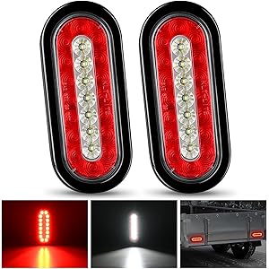 Nilight 2PCS 6Inch Oval LED Trailer Tail Lights Red White 23LEDs w/Flush Surface Mount Grommets IP67 Waterproof Stop Brake Running Reverse Backup Light for Trucks RV
