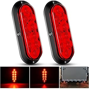 Nilight 6 Inch Oval Red LED Trailer Tail Light Surface Mount 2PCS 10 LEDs Waterproof Stop Brake Turn Trailers Lights for Truck RV Boat Bus Lorry Camper Van Caravan
